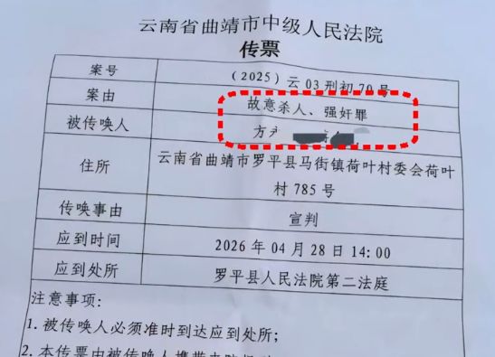 云南曲靖"14岁男孩欲性侵并杀害15岁同班女孩案"将于4月28日宣判。