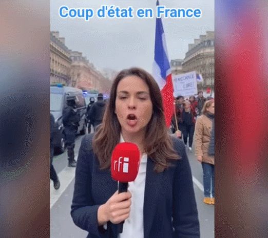 "目前,非官方消息确实显示,法国正发生一场政变,由一名身份尚未披露的上校领导,法国总统马克龙可能已被罢黜。"