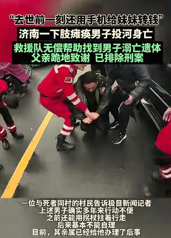 济南那个老父亲,扑通一声跪在冰冷的河边,对着刚刚从事发地打捞上来的儿子,对着旁边帮忙的救援队,哭得不成样子,话都说不囫囵。那一跪,跪的是感激,更是无法言说的绝望和心疼,跪碎了多少人的心啊。他又能怪谁呢,他心里可能比谁都清楚,儿子这是,熬不住了,自己求解脱去了。