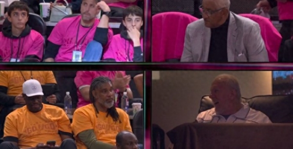 在他身旁,"海军上将"大卫·罗宾逊、"石佛"蒂姆·邓肯、"妖刀"马努·吉诺比利、"冰人"乔治·格文悉数到场,马刺近50年辉煌历史的标志性人物齐聚一堂,构成NBA季后赛史上最具分量的场边天团。
