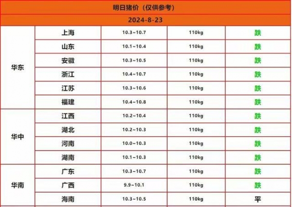 广东下跌0.1元,参考价10.3-10.7元/斤。