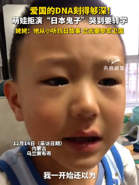 12月14日(采访日期),内蒙古,乌兰察布市,萌娃拒演"日本鬼子"哭到要转学,姥姥:他从小听抗日故事立志要参军卫国。