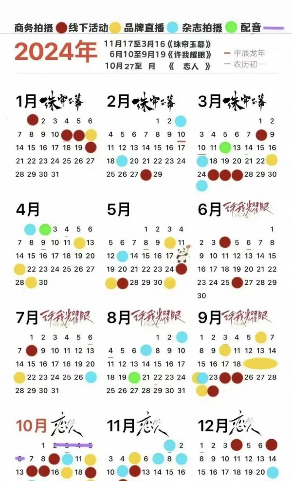 没多久,网络上有粉丝整理出一份赵露思在整个2024行程图。