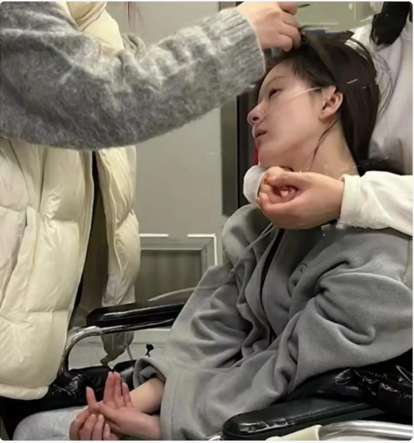 她虚弱到无力行走,下车时都需靠轮椅,视频中全身无力症状明显,旁人全程搀扶着,坐上轮椅那一刻,仿佛所有的力气被抽干。
