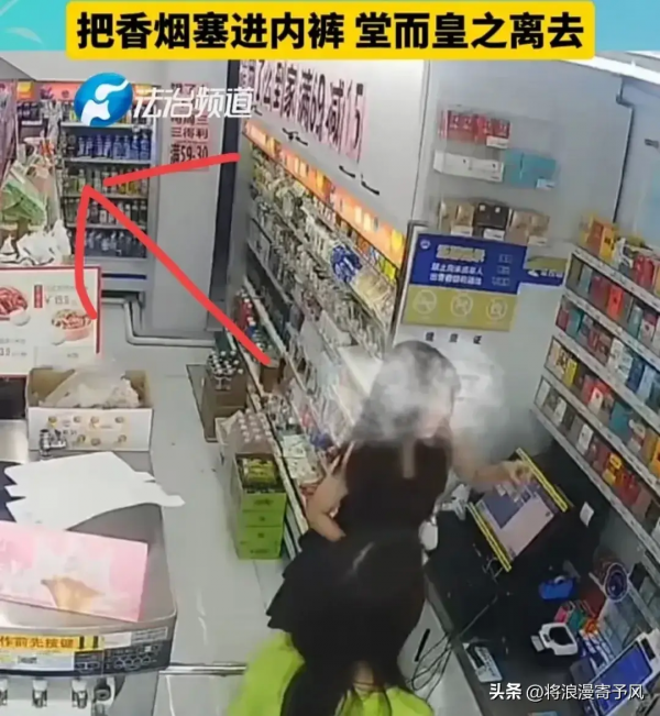 接下来的一幕,绝对能让人惊掉下巴,女子拿着烟四下张望,见自己旁边没有人,便迅速撩起短裙,把刚才顺来的烟直接塞进了内裤里,随后女子便堂而皇之,大摇大摆离开了超市。