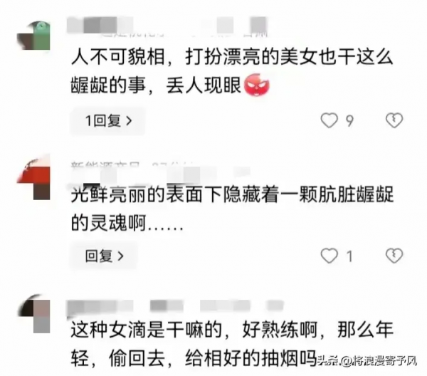 这位网友表示,女子手法很熟练,香烟味道也很正宗,走的时候也是很洒脱,只不过监控那也是相当清晰啊。