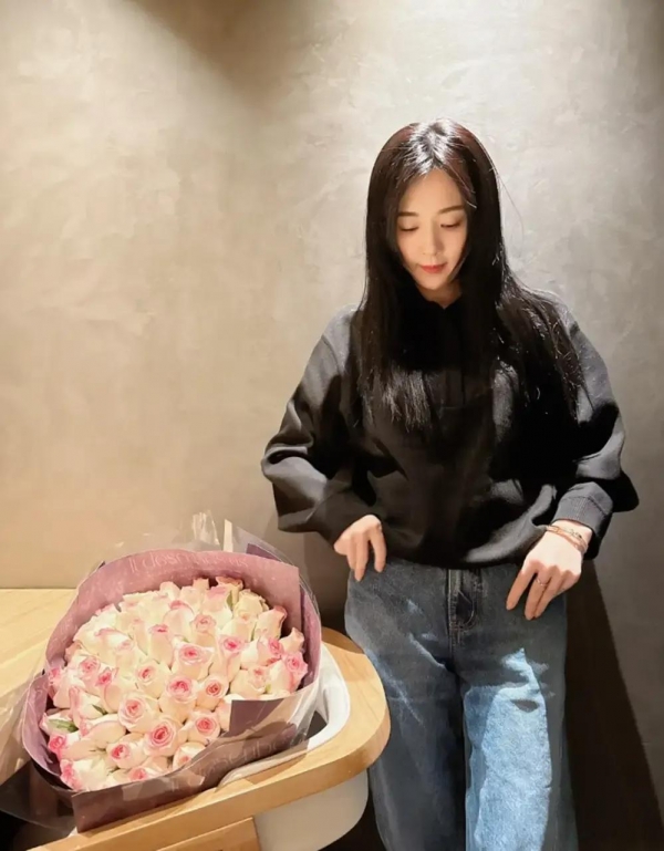 演员王晓晨在女神节晒出一组男友视角照片,瞬间引发热议。九张照片中,她手捧52朵粉玫瑰,无名指上的戒指格外抢镜。