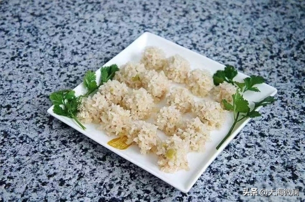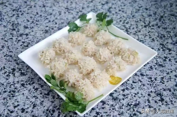 关火,出锅装盘,美味的珍珠丸子端上桌,可以开餐了。