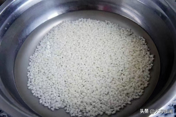 做法:糯米提前淘洗干净,冷水浸泡,大约在4小时以上的时间。