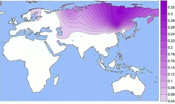 其中之二,OCA2 Ala481Thr也是造成部分中国人皮肤变白的原因之一。尤其是北方地区相对明显,整个欧洲只有东欧和北欧很少的一部分人肤色变浅,这种情况下与现代白种人与黄种人分布基本吻合(图3)。