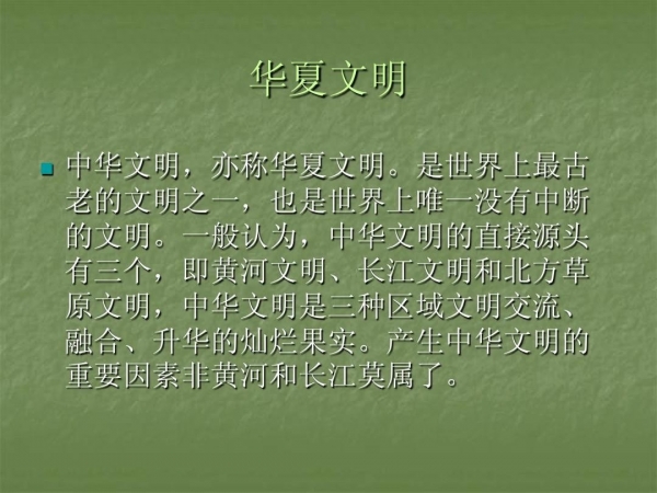 根据考古证明,中华刻画符号是8000年以前产生的,是世界上最早的刻画符号,故中华创造了人类历史上最早的文明--刻画符号文明,并且从历史事实来看,人类各种文字也都应该是中华刻画符号的直接衍生品。因此,中华文明是人类文明的发源地,是人类各种文明的唯一源头。