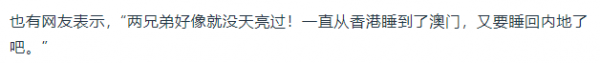 有网友感叹"这兄弟俩好像就没天亮过",从香港一路睡到澳门,身体状态确实值得关注。另一位网友则是对全红婵"谁也不放过"的行径表示赞赏,认为她为这次活动增添了不少欢乐色彩。