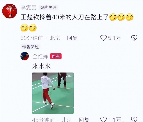 先是樊振东侧躺靠窗位置熟睡,随后是王楚钦张大嘴巴呼呼作响的特写镜头,画面十分逗趣。举重奥运冠军李雯雯调侃称"王楚钦拎着40米大刀在路上了",全红婵则是"来来来"应战,并配上表情包展现轻松愉悦的神情。