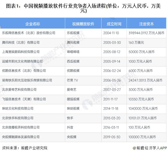 中国视频播放软件行业竞争者入场进程