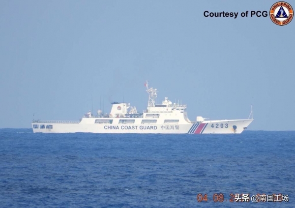 菲律宾海岸警卫队拍摄的,中国海警战舰抵近菲律宾家门口