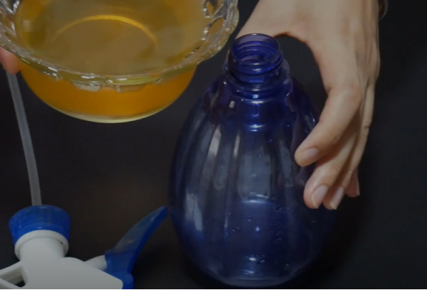 稀释好之后,我们将这碗藿香正气水白醋溶液倒进喷壶中,我们给它摇晃均匀就可以拿去利用起来。