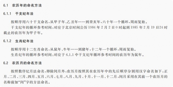 何永杰介绍,由中国科学院紫金山天文台起草的《农历的编算和颁行》(GB/T 33661-2017)进一步明确,农历年的命名方法有干支纪年法和生肖纪年法,而且生肖纪年的循环参考时间和干支纪年一致。比如,公历1984年2月2日为农历甲子年正月初一,鼠年也从这一天算起,公历1984年2月2日至1985年2月19日(除夕)为甲子鼠年。