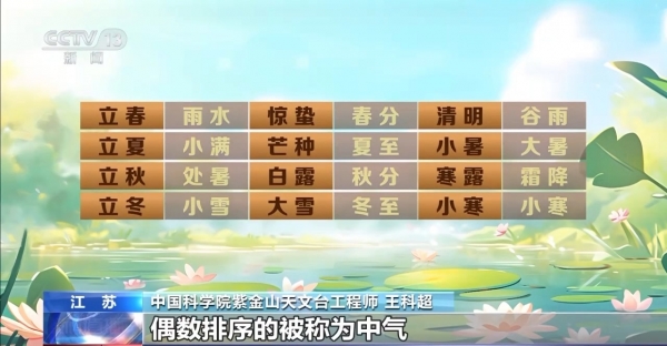 中国科学院紫金山天文台工程师 王科超:二十四节气是"置闰"的一个重要规则依据。从立春开始,偶数排序的被称为中气,像夏至、大暑和处暑都是中气。其中包含大暑的农历月为六月,而包含处暑的农历月为七月,但是在今年的农历当中,农历六月之后的农历月,它只包含了立秋这一个节气,而不包含处暑,所以六月之后的月份被称为闰六月,而包含处暑的农历月才被称为七月。