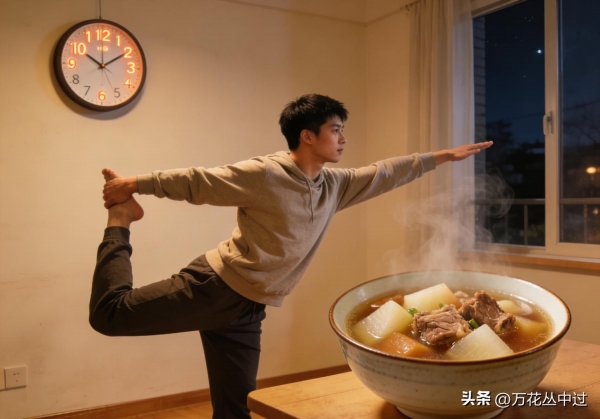 最后是养生的"收身"。"一九二九不出手",今天二九第一天,外头肯定冷,老辈人说"冬月十一不坐凉凳,三九四九不冻脚跟",现在年轻人上班一坐就是八九个小时,下班回家还窝在沙发里,这就是"久坐伤肉"。就算外头下雨下雪没法出门,也得在屋里动一动,定个闹钟,每半小时起来走两步,伸伸懒腰,或者做几个简单的拉伸,让气血活起来。饮食上也得"收",别天冷就天天吃火锅、烤串,这些辛辣的东西容易"上火",不如学学古人"冬吃根",煮点萝卜汤、山药粥,润肺又养胃,我妈今天就给我寄了她炖的萝卜排骨汤,说"冬月十一喝碗汤,整个冬天不咳嗽",这可不是迷信,是真的养生道理。