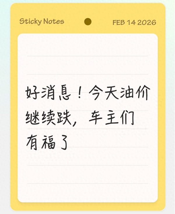 今天是2026年2月13日,给所有车主、司机朋友带来一个实在好消息:国内油价继续小幅回落,92号、95号汽油、0号柴油同步走低,大家加油又能省一笔钱。我不搞标题党、不造谣、不夸大,用最接地气的大白话,把今天最新油价、下跌的真实原因、底层逻辑、对普通人的好处、接下来怎么加油最划算,一次性讲透。全文真实、有料、正能量,没有空洞套话,看完就能用。