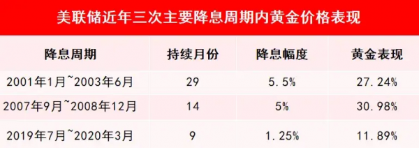 21世纪以来,美联储三次主要降息周期中黄金表现亮眼,累计涨幅在10%以上。