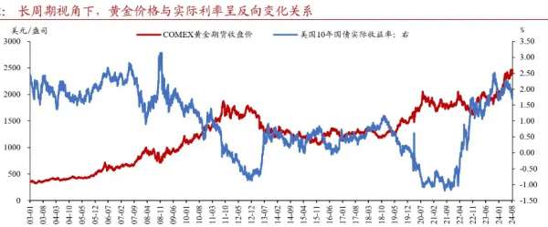 长期来看,黄金价格与美债实际收益率呈反向变化关系。