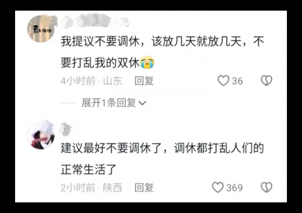 总而言之,对于调休制度,大家自然从质疑到吐槽、从吐槽到讽刺、从讽刺到反对、又从反对变成失望。