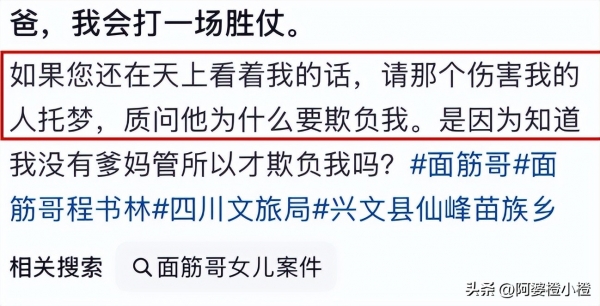 发出这条消息的人,是"面筋哥"程书林的女儿程冷潇,就在父亲去世即将满一周年的时候,这个24岁的女孩,用这样一句话,拉开了自己人生中最艰难的一场战役。
