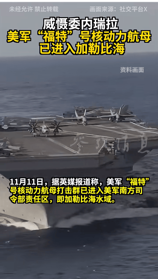 据路透社援引两名美国官员消息报道称,美军"福特"号航母打击群11月11日已进入美军南方司令部的责任区,即拉丁美洲周边水域。美国国防部称,此次部署的目的是"打击毒品走私活动,削弱并摧毁跨国犯罪组织网络"。