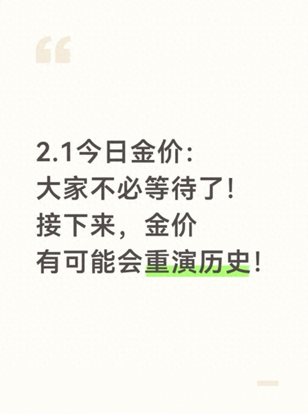 总结一下2月1日的金价行情和接下来的走势:单日的大幅回调只是高位震荡中的正常调整,不是趋势的反转,不用因此恐慌,更不用继续死等低价。接下来的金价,会重演历史上的慢牛行情,就像2019年之后那样,震荡上行,跌不动、涨不疯,支撑这一走势的核心逻辑--央行的持续购金、避险资金的流入、供需关系的失衡,都没有发生根本性的改变。对于普通投资者来说,现在就是布局的好时机,长期配置分批次买入,短期操作等支撑位布局,不追高、不踏空,才能把握这波慢牛行情的机会。