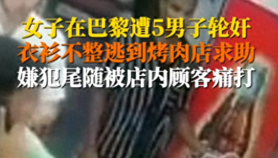 7月20日,一名澳大利亚女子在巴黎遭5名男子轮奸,女子衣衫不整逃到烤肉店求助,工作人员得知情况后试图安慰该女子。随后一名嫌疑男子尾随进店,女子告知工作人员。这名嫌犯靠近该女子拍她的后背,店内一顾客挺身而出起身朝男子挥拳痛打,事发后警察赶到现场展开调查,目前案件正在调查中。