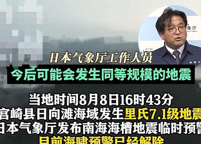 就在上周,日本宫崎县近海发生7.1级大地震,日本气象厅紧急发布"巨大地震注意报",这是日本气象台有史以来发出的首个巨大地震警报!