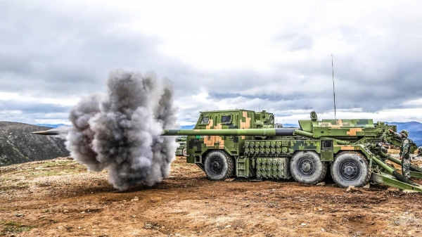 在重型火炮方面,重型合成旅有05式装甲自行榴弹炮,履带式底盘,口径为155毫米,最大射程能达到43公里,还可以发射制导型号炮弹。这款武器俄军看了都流口水,他们的自行火炮射程没我们的远,信息化水平也不够,发射"红土地"制导炮弹还要用人或者无人机指引,而我们的可以发射后就不管。