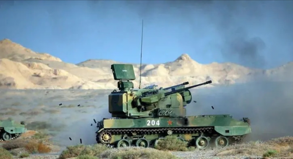 重型合成旅在作战时最重要的就是防空,在这方面我们有PGZ-07式高射炮,口径为35mm。PGZ-07式高射炮上安装有搜索雷达和跟踪雷达,这个车是仿制前德国陆军猎豹高射炮的。PGZ-07式在雷达上做了改进,可以搜寻探测低速低空的目标,其炮塔右侧还装有一套独立的光电火控系统,包括激光测距仪、红外测角仪。