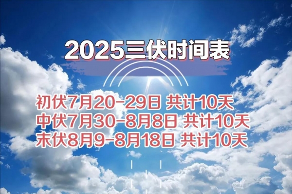 初伏:2025年7月20日-7月29日 共计10天;