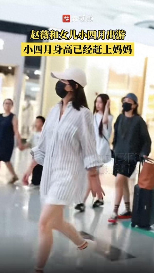 近日,有网友在机场偶遇赵薇和妈妈还有女儿小四月一起出游,并表示15岁的小四月个子高挑气质好,笑起来很像爸爸黄有龙。