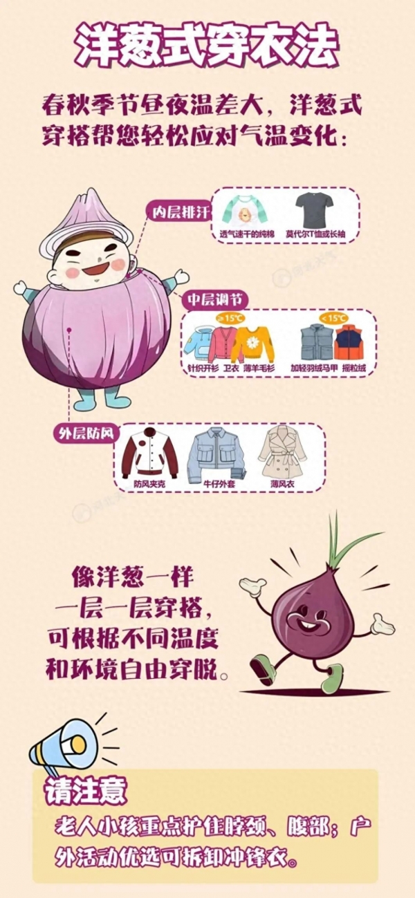 面对突如其来的降温,如何科学添加衣物才能既保暖又健康?不妨试试"洋葱式"穿衣法!