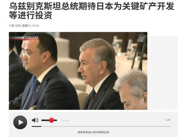 12月20日,在东京举行的"日本+中亚五国"首脑会谈中,乌兹别克斯坦总统米尔济约耶夫公开表态支持日本成为联合国安理会常任理事国,并当场与日本首相签署多项合作文件。