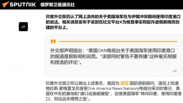 这也急得印度政府火速否认,表示所谓的美伊开战期间,美军使用印度港口的说法都是假新闻。