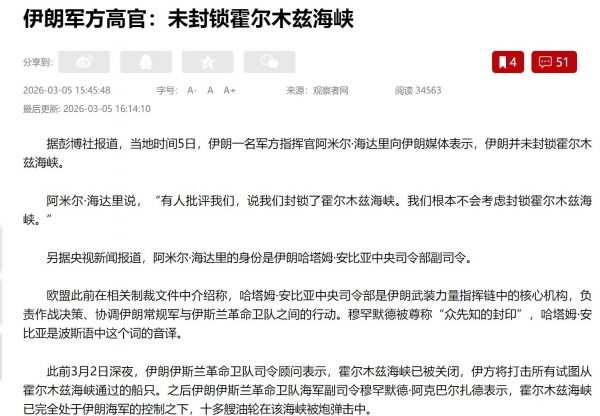 另外,伊朗的调整也说明了一点,伊朗军方正在为持久战做准备,避免与美以的局部冲突,因为霍尔木兹海峡的全面封锁,而升级为多线交织的区域性战争。