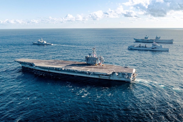 10月17日才刚刚穿过马六甲海峡进入南海,美军还一直对外宣称,航母在这儿执行的是包含"自由航行"在内的"例行任务"。