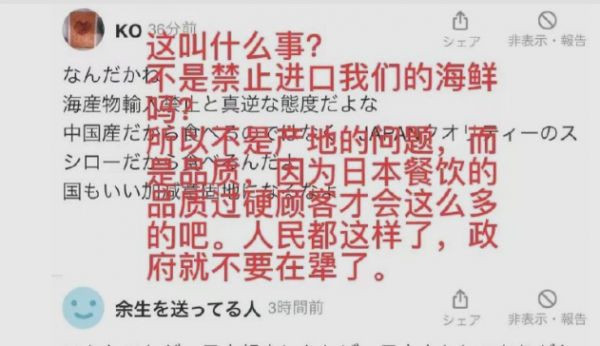 结果一些中国网民只截取了"允许开放进口日本的海产"。
