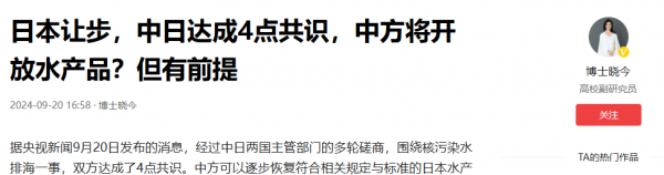 9月20日根据央视新闻消息,中日两国的外交部门经过多次探讨和协商后,关于核污水排放入海终于初步达成了4个共识。
