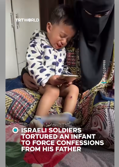 18月大的贾瓦德·阿布·纳萨尔身上可见伤口,被以色列释放后不停痛哭。 土耳其广播电视公司