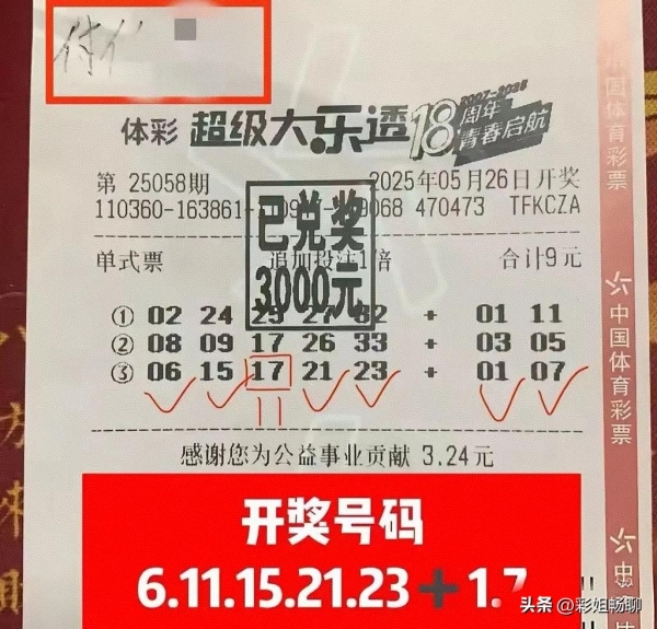 即便是派奖活动已经结束,可每逢最新一期大乐透开奖结束后,网络上总会出现许多精彩瞬间。值得一提的是,大乐透第25058期开奖结束后,多张大奖实票被提前曝光。有人斩获1007万巨奖,有人收获26万二等奖,还有人收获3000元安慰奖!下面,咱们就来具体了解一下当期开奖盛况。