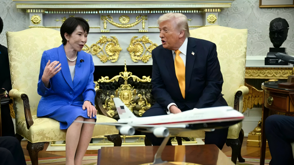 3月19日,特朗普在椭圆形办公室会见了日本首相高市早苗。双方就"维护台湾海峡和平稳定的重要性"等议题进行了讨论,并协商提升中程空对空导弹(AMRAAM)等武器的产能 AFP