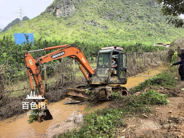 10月2日,他还想尽力拯救被淹的片区,赶忙叫来一辆钩机来开沟排水。