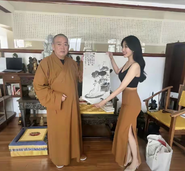 真正让谣言愈演愈烈的,是一张网上流传的照片,照片宣称是采访结束后,释永信亲吻李湘手背的画面。
