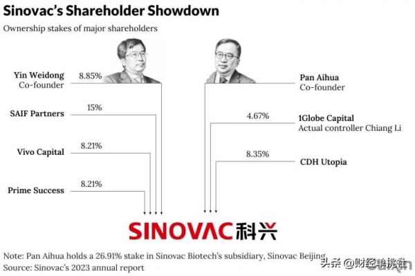 科兴境外上市的那层壳,是注册在安提瓜、在纳斯达克上市的 Sinovac Biotech Ltd.,它通过 100% 持有的科兴香港,去控股中国境内的疫苗公司。而真正的境内资产是两家。一是北京科兴,股权在科兴香港73.09%和未名医药26.91%;二是负责新冠疫苗的科兴中维,大股东是北京科兴持有59.24%,中国生物制药拿15.03%,再加上一些美元基金和管理层。股民在美股买到的,只是最上面那家安提瓜公司的股份,他们对北京科兴、科兴中维赚到的钱,是通过这一层"壳"间接参与的。谁在北京科兴、科兴中维这两层话语权更大,谁在安提瓜这层法律框架里更占优势,最终决定了谁能坐在桌边,去讨论这几百亿现金到底怎么分。