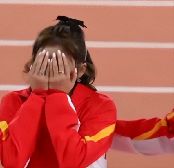 在获得全运会女子100米栏银牌之后,吴艳妮在颁奖仪式上激动落泪。